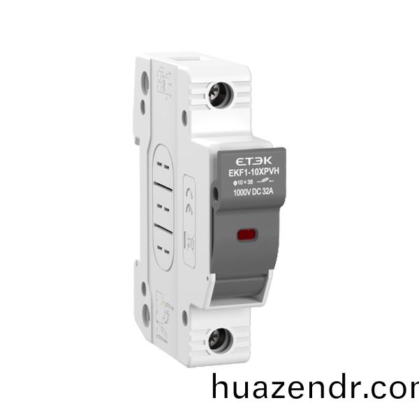 EKF1太陽(yang)能(neng)光伏係統(tong)保護用(yong)熔(rong)斷器(qi)式(shi)隔離(li)器(qi)額定(ding)工(gong)作電(dian)壓(ya)可(ke)達(da)DC1500V,最大(da)工作電流⾄50A,採(cai)用標(biao)準(zhun)TH35-7.5/DIN35導軌安裝。